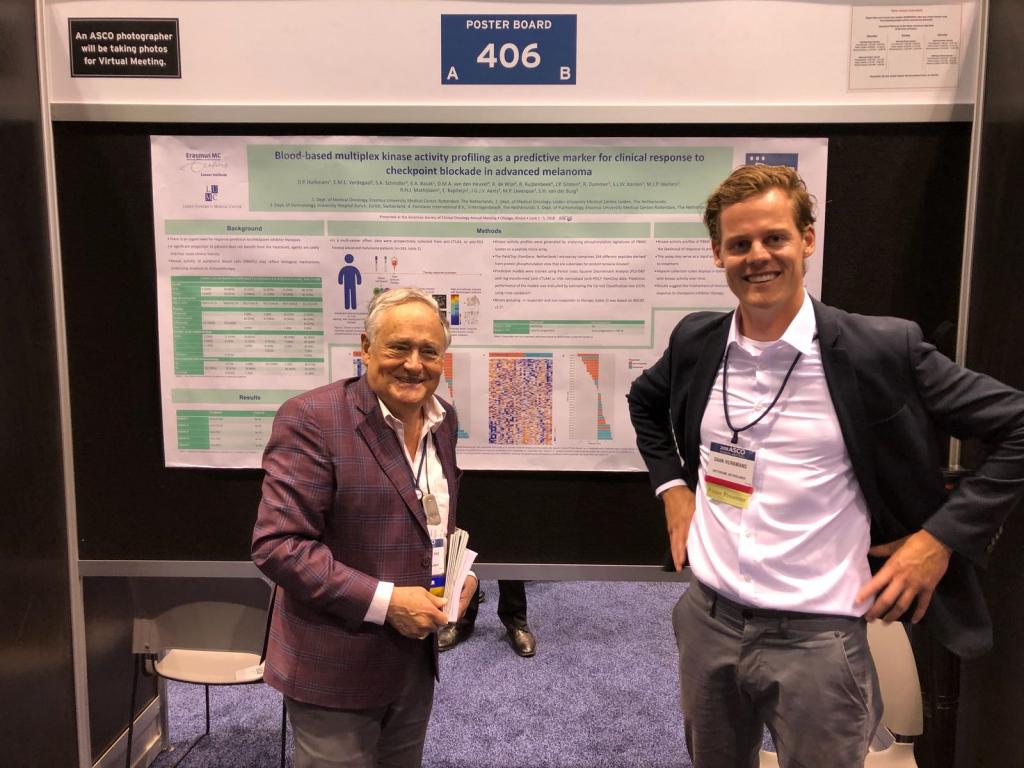 PamGene is active in the area of diagnostics research and is in the process of developing clinical biomarkers for therapy response. There is an urgent need to properly predict clinical response to checkpoint inhibitor therapy. In a multi-center effort, we presented a landmark poster at this year’s American Society of Clinical Oncology (ASCO) annual Meeting, held in Chicago, from June 1-5, 2018. We showed that the PamChip blood test can serve as a rapid predictive liquid biomarker test to stratify patients prior to immunotherapy, by measuring kinase activity in patients’ blood prior to therapy start. We are proud and excited to announce that the validation study is currently underway. Please contact us to discuss these new data and the implications for the field.