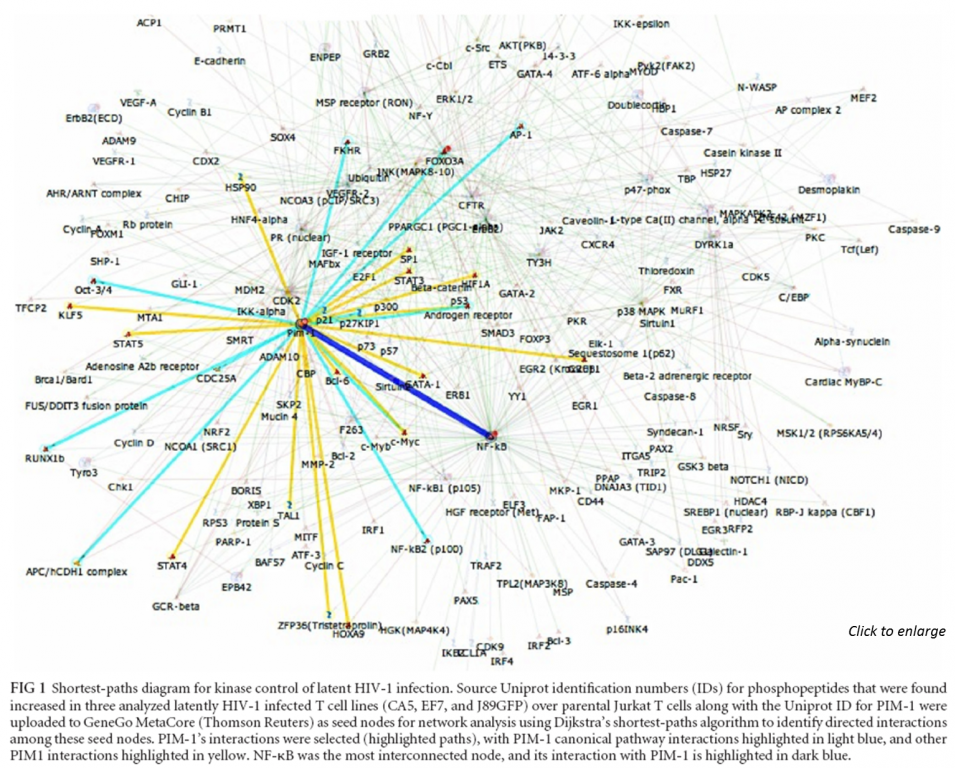 The researchers of Alabama previously demonstrated that control of HIV-1 latency starts with kinase activity. In this follow-ups study, they demonstrated that the kinase activity profile of latently HIV-1-infected T cells is altered relative to that of uninfected cells. A ranking of altered kinases generated from the kinome profile data predicted the kinase PIM-1 as a key switch involved in HIV-1 latency control. Further research demonstrated that PIM-1 activity is indeed required for HIV-1 reactivation in T cell lines and primary CD4 T cells. The presented results thus confirm that kinases are key contributors to HIV-1 latency control. This expands the conceptual understanding of the dynamic interactions of the host cell and the latent HIV-1 integration event and position kinome profiling as a research tool to reveal novel molecular mechanisms that can eventually be targeted to therapeutically trigger HIV-1 reactivation.